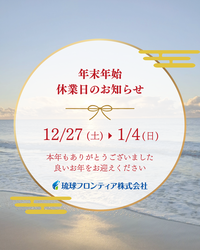 平素よりご愛顧いただき、誠にありがとうございます。誠に勝手ながら、下記期間を年末年始休暇とさせて...