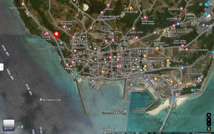 場所は古宇利島南西側の一周道路沿いに位置しています。