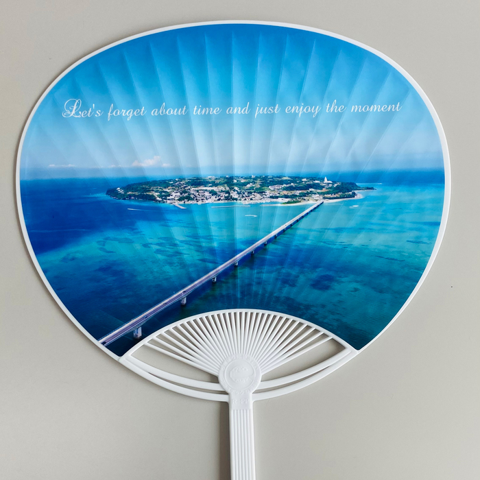 表には古宇利島全体が綺麗に写っている写真に「Let’s forget about time and just enjoy the moment」という文字が入っています✨
